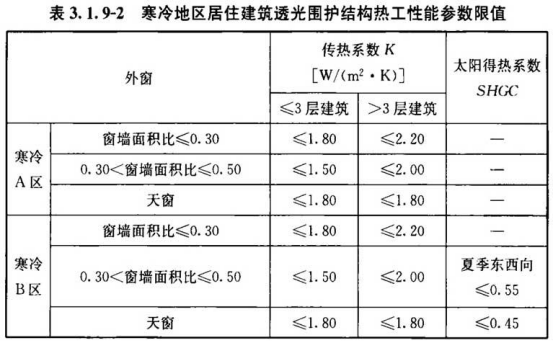 3.1.9 居住建筑透光围护结构的热工性能指标应符合表3.1.9-1~表3.1.9-5的规定。